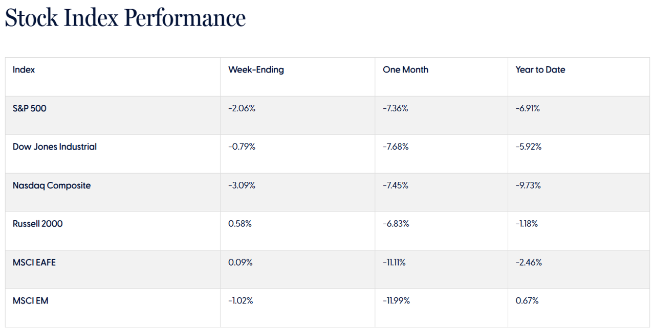 U.S. and global equity markets finished the week mostly lower as geopolitical uncertainty in the Middle East continued to drive volatility across regions and asset classes. Equities were whipsawed by shifting hopes for de‑escalation, choppy energy prices, and renewed pressure on large‑cap technology stocks, while Treasury yields moved higher amid weak auction demand and elevated inflation expectations. International markets were mixed, with Europe showing relative resilience and most Asian markets declining, as investors remained highly sensitive to developments affecting global energy supplies. In commodities, crude oil was little changed, and in currencies, the dollar strengthened and the yen weakened near key levels.