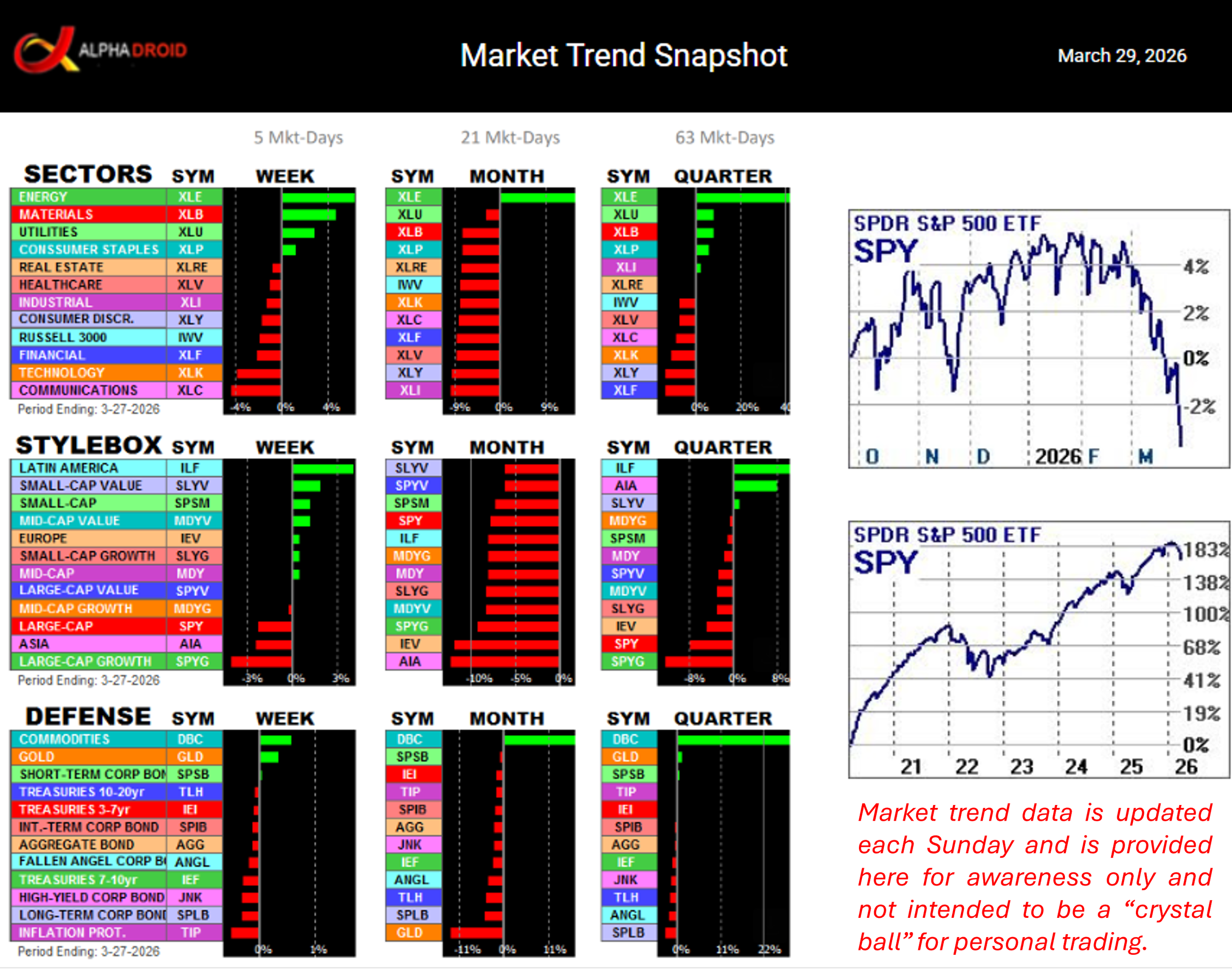 Traditionally, assets like bonds and US Treasuries provide an inverse relationship to the direction of stocks — meaning that transitioning to these assets during market downturns is a great defensive strategy, but as you see in this Market Trend Snapshot, there were very few bright spots in Sectors, Style or Defense for the past several months.